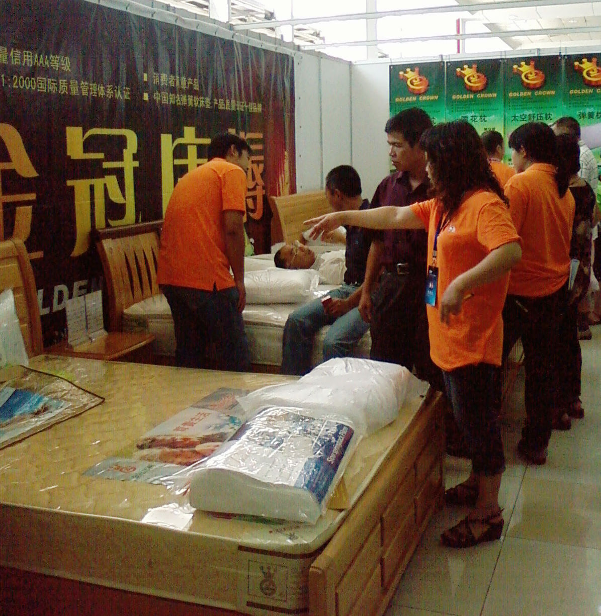在刚刚落幕的2009江门进出口商品展销会上,集广东省先进企业、消费者满意单位、质量信得过企业等荣誉于一身的床品品牌——金冠床具吸引了国内外众多客商的眼球。 金冠床褥不但拥有华丽精致的外观,而且非常重视床褥内部结构。床褥垫层以上乘织锦、天然乳胶等材质为原料,以此来增加床褥的舒适性,提高床褥的功能。展位按区域主要分为床褥区和床品区。床褥主要展示宝典舒压系列、金冠之宝系列等。 床褥引进比利时织锦大提花面料,图案立体感强,色彩温和、手感细腻爽滑,彰显高贵典雅品位,深受顾客追捧。 3天的展会期间,金冠床具接待来自国内外客商共4000余人次,有意向客商达百余人。